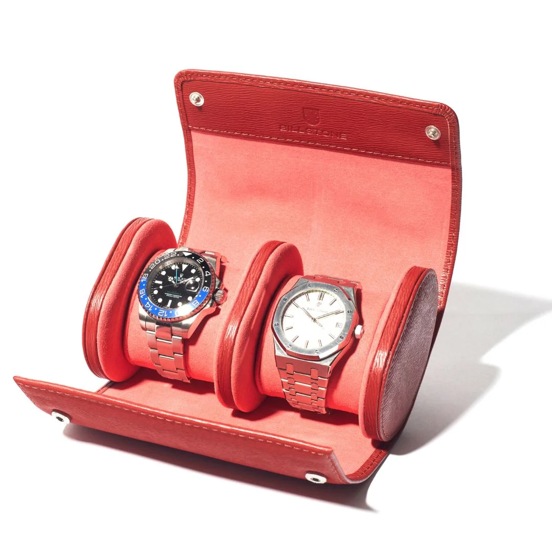 Billstone Watch Roll Watch Travel Case Voyager 2 Piece Monaco Red