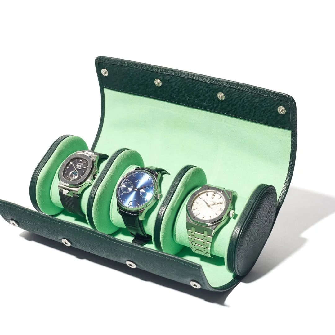 Billstone Watch Roll Watch Travel Case Voyager 3 Piece Geneva Green