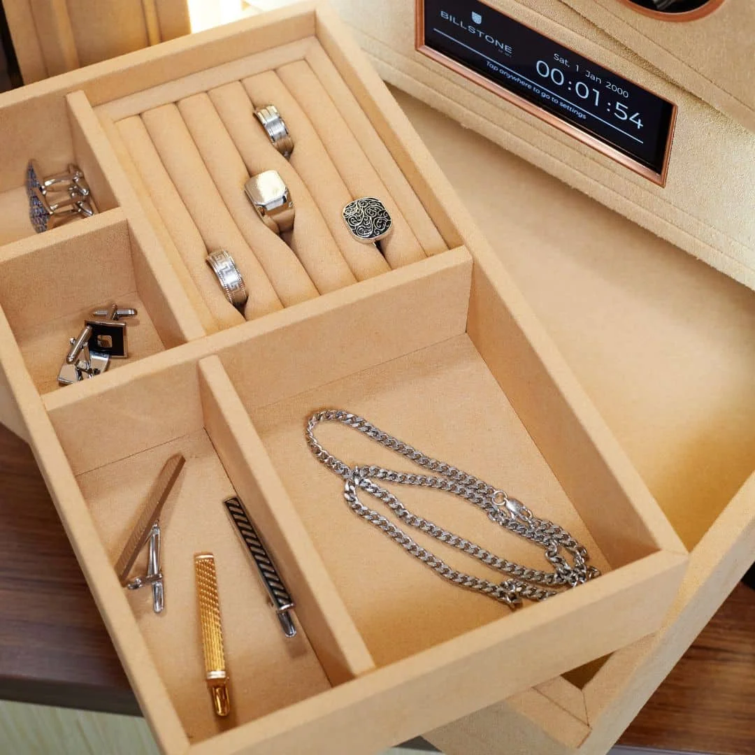 At Billstone, we bring over 40 years of experience, since 1977, in delivering premium watch winders, watch/jewelry boxes, and luxury safes. With a focus on safety and exceptional craftsmanship, we ensure your valuables are stored and displayed with both elegance and security, making us the trusted name for protecting your most cherished possessions.