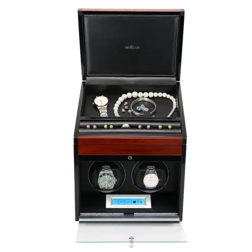 • Lid-opening auto-stop sensor – Protects your movement when accessing the watch winder