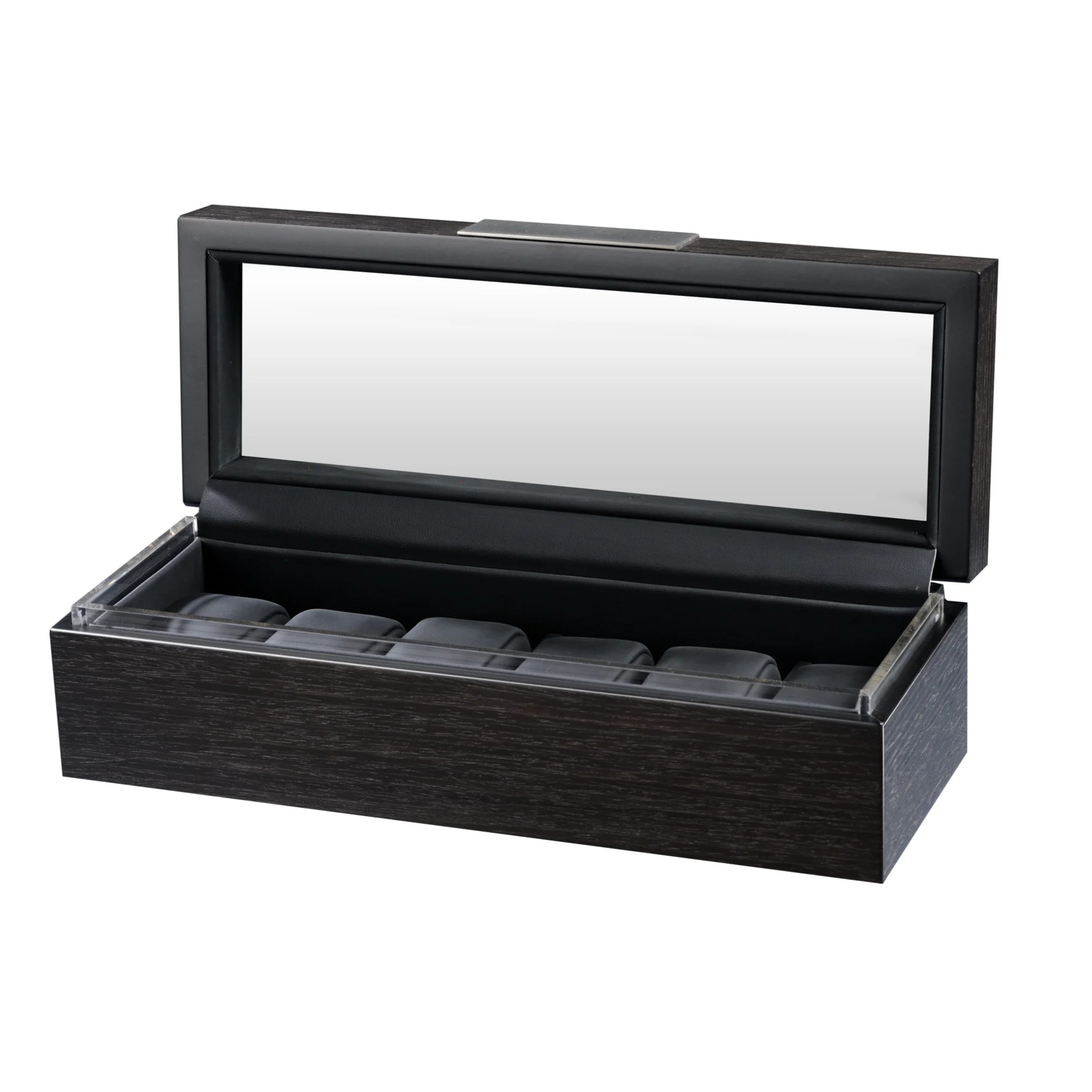Volta 6-Piece Watch Box – Matte Charcoal Grain Pattern with See-Through Top