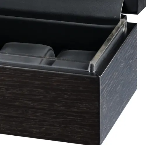The Volta 6 watch case changes how you store and interact with your timepieces. The matte charcoal grain exterior immediately signals quality, while the black leather interior cradles each watch with the care it deserves.